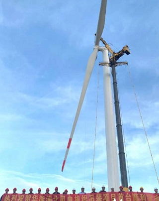 当叶片与机舱在百米高空稳稳对接,施工现场和守候在项目部的所有人都长长地松了一口气,首台风机吊装完成标志着该项目建设实现了一个里程碑节点。项目部将在严保安全、质量的前提下,进一步优化吊装方案,狠抓节点计划,早日实现并网发电的总目标。
