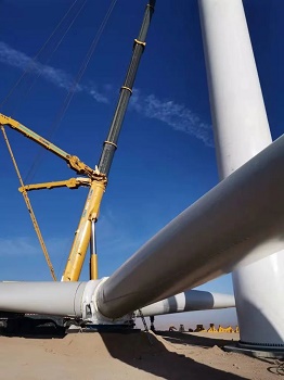 初冬的原野,格外空旷和荒凉。站在永登坪城乡的一处山坡上,远望华能永登新能源有限公司风电项目建设现场,一个长达81米、重达20多吨的风机发电叶片,从远处看去,像飞机上的机翼。在另一处施工现场,工人们用大型吊车正在安装风机。