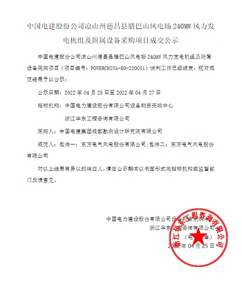 中国电建540MW风电项目,明阳智能、三一重能、东方电气预中标