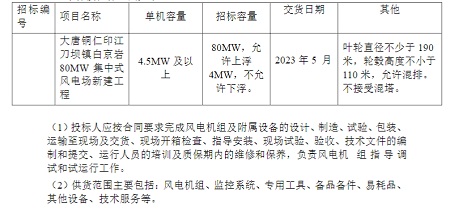 大唐集团2022年度框架招标大唐铜仁印江刀坝镇白京岩80MW风电工程风力发电机组及附属设备标段招标公告