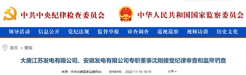 短短两日,电力行业两人先后落马。11月17日,川投能源董事长刘体斌被查。与会计出身的刘体斌不同,沈刚从电力工程负责人做起,在大唐有长达16年的工作经历。