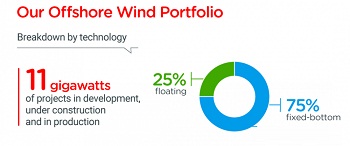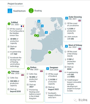 道达尔能源公司由道达尔改名而来,其目标是成为能源转型中的世界级参与者。目前,该公司致力于提供有助于应对气候变化和推进可持续发展的解决方案。道达尔能源正努力聚焦海上风电的开发。特别是可以部署在深远海的漂浮式海上风电。海上风电可利用比陆上风电更大的风力资源。2020年以来,道达尔能源在欧洲和亚洲投资了多个具有里程碑意义的漂浮式和固定基础海上风电项目。目前已累计风电装机超过3.5GW。