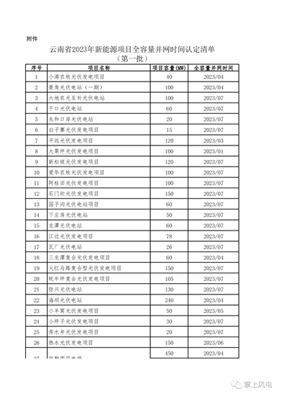 云南省能源局关于公示云南省2023年新能源项目全容量并网时间认定清单(第一批)的公告