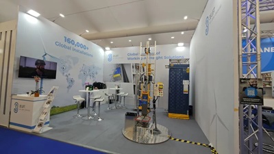 展会上,中际联合展示了塔筒登高场景系统化解决方案,包含可承载3人的爬梯导向升降机、可承载1人并广泛适用技改市场的免爬器以及逃生包、防坠器与速差器等安全防护产品。