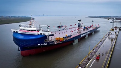 “KING ONE”号由大金重工旗下大金造船基地承建。该基地成立于2022年,作为公司环渤海湾三大海工基地之一,目前手持订单已排至2029年,产品涵盖大型甲板运输船、半潜船、重吊船等。大金重工表示,该船的成功建造是公司构建“装备制造+远洋运输”一体化服务能力的关键进展。