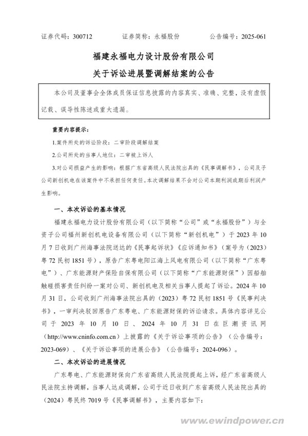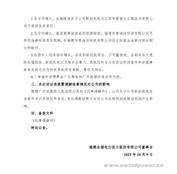 这起案件是海上风电行业发展过程中具有典型意义的纠纷。永福股份在公告中表示,公司始终坚持合规经营,此次调解结果维护了企业合法权益,也为行业处理类似事故提供了参考。随着我国海上风电加速开发,如何平衡项目开发与风险防控,将成为行业持续健康发展的重要课题。
