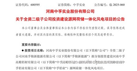 中孚实业表示,此次投资建设源网荷储一体化风电项目,是公司践行“绿色、低碳、循环发展”理念的关键举措。项目建成后,将有效提升企业绿电自用比例,降低能源成本与碳排放强度,进一步增强公司在绿色铝材领域的综合竞争力。