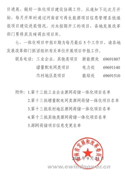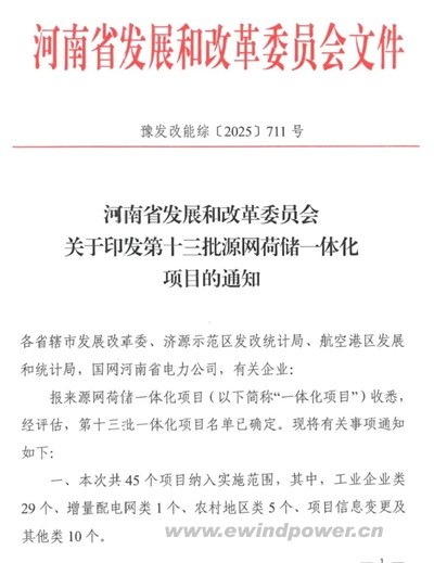 掌上风电消息,近日,河南省发展和改革委员会正式印发《关于实施第十三批源网荷储一体化项目的通知》,共有45个项目被纳入实施范围,涵盖工业企业、农村地区、增量配电网等多个类型,标志着河南在新型电力系统构建和新能源消纳能力建设上再进一步。