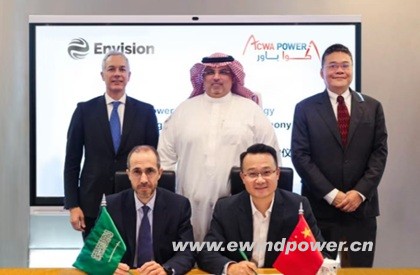 掌上风电消息,在日前举行的第九届沙特“未来投资倡议”大会期间,远景能源与全球最大私营海水淡化公司ACWA Power签署为期七年的战略合作协议,双方将在沙特、乌兹别克斯坦、中国及中亚、东亚等重点市场协同推进可再生能源项目开发与本地化能力建设,共同打造覆盖风机创新、制造落地、运维服务为一体的可持续能源生态系统。