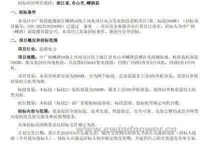 掌上风电编后语:中广核此次招标,不仅是一个项目启动的信号,更是海上风电产业发展趋势的缩影。“容量上浮50%”这一条款,凸显行业对技术进步和成本优化的持续追求。随着越来越多项目采用更大单机容量机型,产业链上下游企业也需在技术研发、产能布局和交付能力上提前备战。未来,谁能在效率、成本和可靠性上形成综合优势,谁就将在沿海风电市场占据主动。