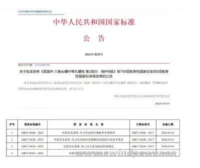 随着风电产业规模不断扩大,特别是海上风电的快速发展,对设备可靠性、安全性和使用寿命提出了更高要求。这批新标准的实施,将有效提升风电设备的质量一致性,降低运维成本,为行业良性竞争和健康发展奠定坚实基础,最终为“双碳”目标的实现提供坚实保障。
