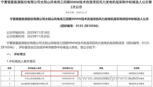 掌上风电编后语:老旧风电场技改正成为风电行业的新增长点。随着早期投运的小型机组逐渐老化,利用小时数下降,技改“以大代小”成为提升资产效益的关键路径。此次宁夏银星能源99MW技改项目,不仅展现了金风科技在陆上大兆瓦机组的竞争力,也为行业提供了老旧风场升级的可行方案。未来,随着更多早期风电场进入技改周期,预计“以大代小”市场将加速扩容,成为风电产业链的新蓝海。