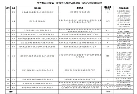 截至目前,辽宁省2025年已累计下发三批分散式风电项目。其中: