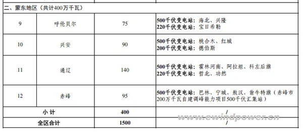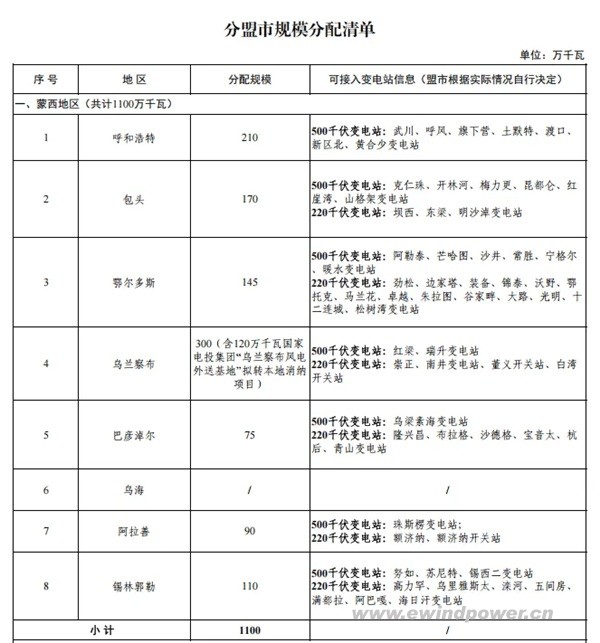 从分盟市规模清单看,乌兰察布规模最大(300万千瓦,含120万千瓦国家电投风电基地转本地消纳项目),鄂尔多斯、包头分别分配145万千瓦、170万千瓦,锡林郭勒、阿拉善各110万千瓦。蒙东地区通辽规模最高(140万千瓦),赤峰95万千瓦,呼伦贝尔、兴安各75万千瓦、90万千瓦。