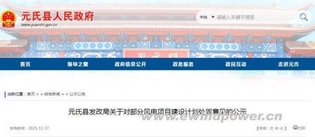 元氏县发改局关于对部分风电项目建设计划处置意见的公示