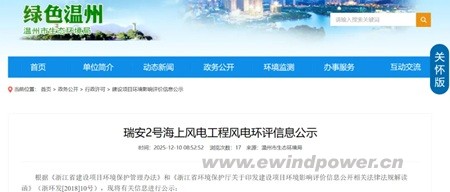 从环评初步结论来看,瑞安2号海上风电项目符合我国可持续能源发展战略,有助于增加区域电力供应、优化电源结构,并有效推动温州沿海风能资源的高质量开发,社会、经济与环境效益显著。报告指出,工程建设与运营可能带来的海洋生物损失等问题,可通过科学合理的生态补偿机制予以修复,其他环境影响也可通过相应环保措施得到有效控制。只要严格落实环评报告提出的各项环保与管理要求,从环境保护角度出发,该项目不存在根本性制约因素,建设可行。