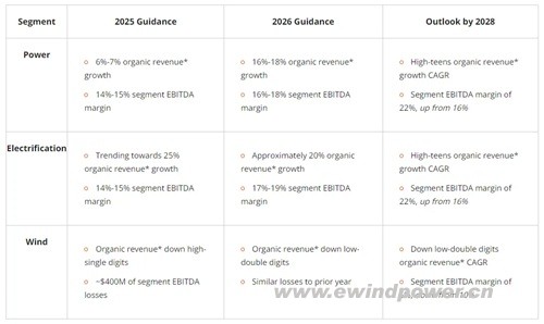掌上风电讯 近日,GE Vernova公布了一份面向2028年的最新财务展望。整体来看,公司业绩呈现出明确的增长轨迹,但细看各业务板块,却是“几家欢喜几家愁”。其中,风电业务的持续低迷,成为这份报告中一道挥之不去的阴影。