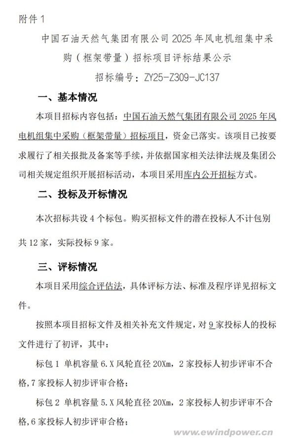 随着传统能源企业加速能源结构转型,风电已成为其新能源布局的关键一环。此次中石油大规模风电集采结果的出炉,不仅为2025年风电市场注入强劲需求信号,也将进一步推动风电整机行业在技术创新与成本优化方面的深度竞争。