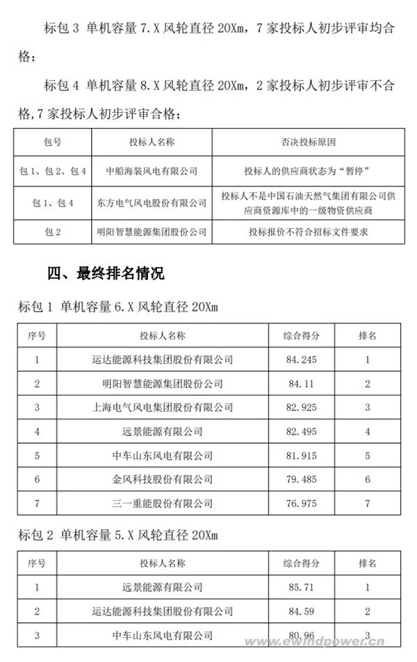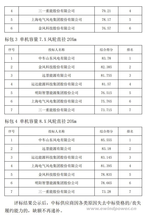 包3(7.X机型,200MW):中车山东风电,投标报价1350元/kW;
