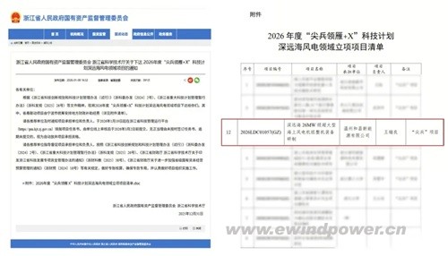 近日,浙江省国资委与省科技厅联合发布2026年度“尖兵领雁+X”科技计划深远海风电领域项目清单。在公示的13个重点专项中,由运达能源科技集团全资子公司牵头申报的“深远海26MW级超大型海上风电机组整机装备研制”项目脱颖而出,成为本次专项中唯一一个整机装备类项目,标志着我国在深远海超大功率风电机组自主研发领域迈出了关键一步。