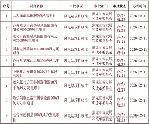 此次集中核准的9个项目,单体规模大、地域分布广、投资主体多元,展现了黑龙江风电开发的强劲势头与巨大潜力。项目覆盖了从五大连池、北安、穆棱到齐齐哈尔、绥化、哈尔滨方正与五常,乃至七台河勃利等多个市县,形成了多点开花、全面布局的良好态势。