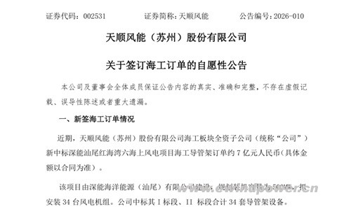 编后语:天顺风能近期密集披露的海工订单,与其业绩预告中的战略性亏损形成了鲜明对比。这恰恰描绘出一家传统风电制造企业在行业变革浪潮中,为长远未来而“断臂”转型的典型图景。阵痛是暂时的,方向是清晰的。随着国内海上风电,特别是深远海项目的规模化启动,对高品质、大型化海工装备的需求将持续释放。天顺风能正试图以短期的财务承压,换取在海工这一核心赛道上的长期卡位优势。能否在激烈的市场竞争中,将订单优势转化为可持续的盈利能力,将是对其技术、成本、交付和国际化能力的综合考验。这不仅是一家企业的转型故事,也是整个中国风电制造产业链向海图强、迈向高附加值环节的一个缩影。