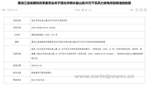 近日,黑龙江省风电项目核准迎来一波密集批复。黑龙江省发展和改革委员会在3月中旬至下旬,接连核准了4个风电项目,累计装机容量达到1000兆瓦(1GW)。这批项目的集中获批,标志着黑龙江省“十四五”乃至“十五五”期间的风电开发建设正加速进入实质性推进阶段,为黑土地的能源转型与绿色产业发展注入强劲动力。