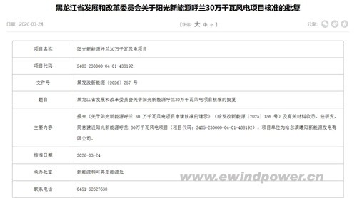 阳光新能源呼兰30万千瓦风电项目:项目单位为哈尔滨曦阳新能源发电有限公司,其背后是全球领先的光伏、风电系统解决方案供应商阳光新能源开发股份有限公司。此次在哈尔滨市呼兰区落子,是其在东北地区风电市场的重要一步。