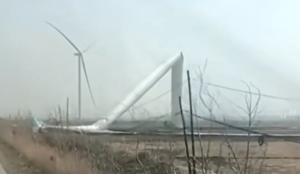 4月12日凌晨,辽宁省铁岭市铁岭县一在建290MW风电项目发生风机塔筒折弯倒地事件,未造成人员伤亡。