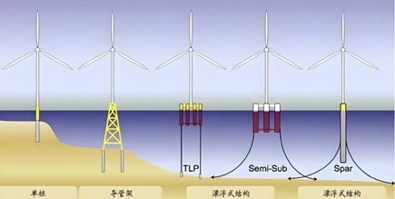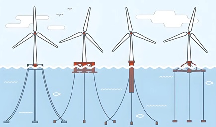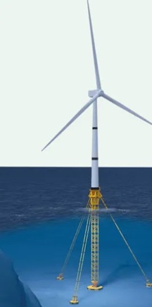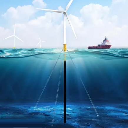 固定式张力腿平台:此项技术灵感源于油气行业的深水作业平台。通过借鉴张力腿平台的稳定设计理念,并将其“固定”于海床,为海上风机在更深水域提供了堪比固定式基础的稳固支撑方案,挑战了浮式平台在深水的“必要性”。